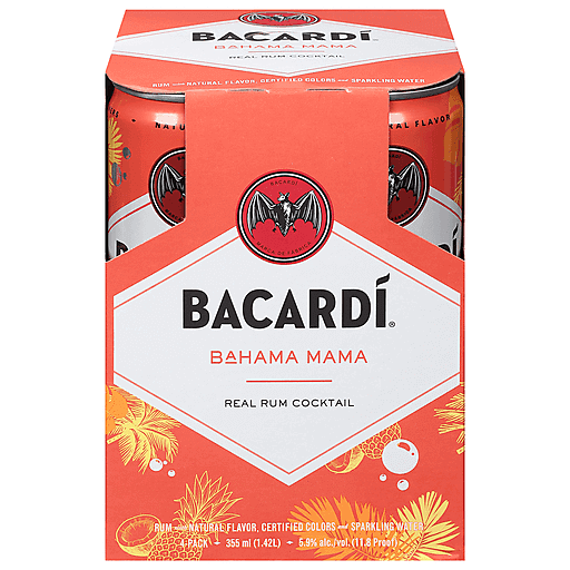 Bacardi Rum Cocktail, Bahama Mama, 4 Pack 4 EaReal rum. Real ingredients. Island flavor. Better with friends. Drink responsibly. No artificial sweeteners. Please recycle.