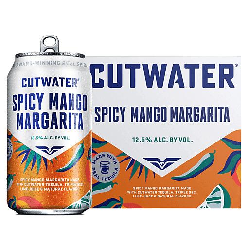 Introducing Cutwater Spicy Mango Margarita, made with our award-winning tequila and a balance of juicy mango, lime & jalapeño flavors. Enjoy with a spicy rim over ice or straight from our can. Available in 12 fl oz cans, Cutwater's Spicy Mango Margarita is the perfect way to transform any moment into a fiesta. What truly makes Cutwater Spicy Mango Margarita stand out isn't just its delicious flavor – it's also gluten-free! Whether you're hosting a gathering or just chilling with your closest friends, there's no better way to kick off the night than by popping open Cutwater's ready-to-drink cocktails. So, pick up some limes, break out your favorite chips, and let the enjoyment begin! Take a sip, savor the taste, and let this bold canned cocktail remind you of sunny days filled with friends, laughter, and unforgettable memories. 12.5% alc./vol.