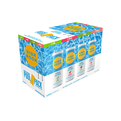 High Noon Pool Pack Vodka Seltzer 8 Pack is made with real vodka & real juice, sparkling water and natural flavors. Only 100 calories, no added sugar and gluten free. The High Noon Vodka Seltzer LTO Pool Pack contains of 4 refreshing flavors (2 cans of each): Lime, Guava, Kiwi, & Peach. This Vodka Seltzer 8 Pack perfect way to make a splash at your next pool party, just as long as you remember to share!