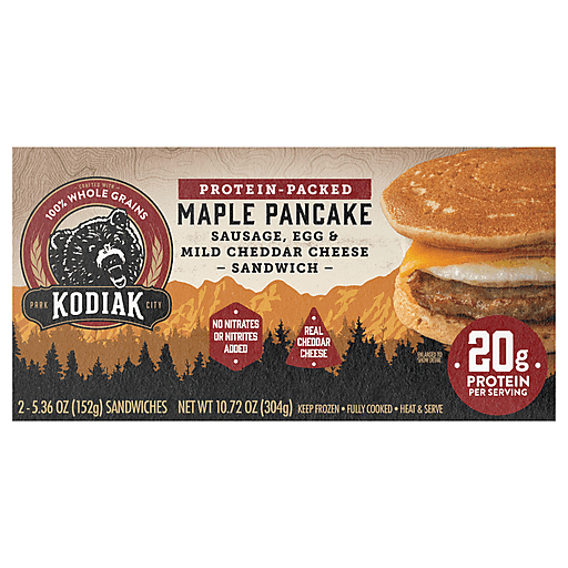 Kodiak Protein Packed Maple Pancake Sausage, Egg & Mild Cheddar Cheese Sandwich 2 Ea