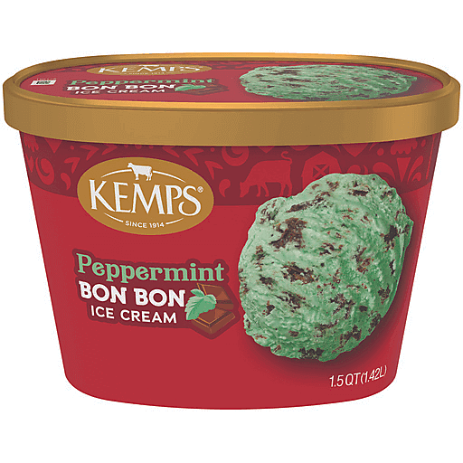 Delight your sweet tooth with a delicious bowl of Kemps Peppermint Bon Bon Ice Cream. Our Peppermint Bon Bon ice cream features mint ice cream with rich chocolatey chips that the whole family will love. Enjoy this delicious ice cream by the scoop with a cone, in a bowl with all your favorite sundae toppings, or as a side with your favorite cake. Since 1914, Kemps has been delighting families throughout the upper Midwest with wholesome and delicious dairy products. Farmer owned. Family loved.