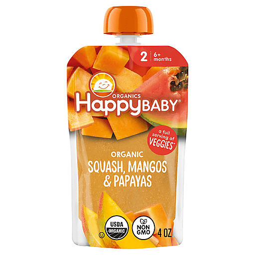 Happy Baby Organic Stage 2 (6+ Months) Squash, Mangos & Papayas 4 Oz