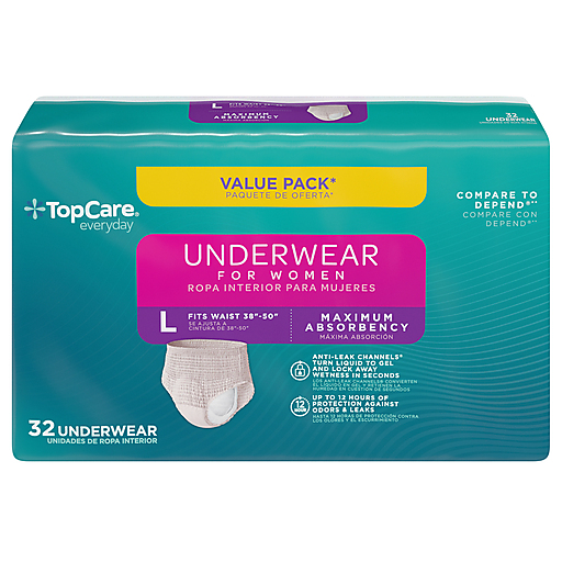 Top Care Maximum Absorbency L Underwear For Women Value Pack 32 Ea