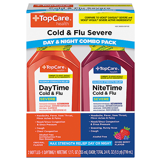Top Care Day Time/Nite Time Severe Max Strength Relief Original Flavor/Mixed Berry Flavor Cold & Flu Severe Day & Night Combo Pack 2 Ea