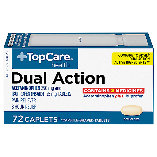 Top Care Caplets Dual Action Pain Reliever 72 Ea