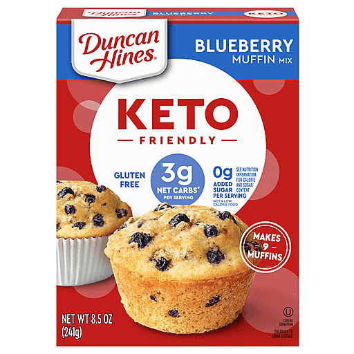 Duncan Hines Keto Friendly Blueberry Muffin Mix makes delicious muffins that fit your lifestyle. Loaded with fruity flavor, these blueberry muffins are made with almond and coconut flours, real blueberries and stevia for a delightful keto friendly start to your day. These naturally gluten free muffins contain only 3 grams of net carbs* and 0 grams of sugar** per serving. Simply add water, eggs and oil to the baking mix, stir to combine and bake for the recommended time in the instructions. Prepare this muffin mix to make keto muffins for a quick breakfast any day of the week or use it to make mini muffins for sweet snacks after school. These keto breakfast muffins help you feel good about the baked goods you serve. Each package makes 9 muffins. From breakfasts to just-because sweet treats, Duncan Hines has you covered when you're ready to bake and create. Skip the sugar, not the sweets!