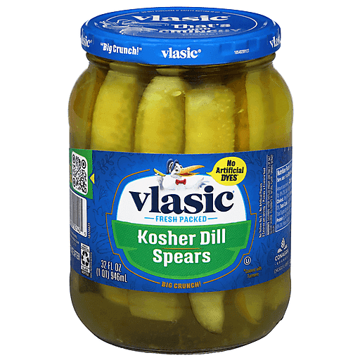 Vlasic Kosher Dill Pickle Spears are deliciously crunchy. All ingredients, along with the Vlasic secret pickling recipe, make these Kosher dill pickles tasty. These snack pickles contain 0 calories per serving and deliver one-of-a-kind crunch your entire family loves. Kosher dill spears are ideal for serving alongside hamburgers, hot dogs and sandwiches, or eat them right from the jar as a satisfying snack. Vlasic Kosher Dill Pickle Spears are packed in a 32 fluid ounce resealable jar to keep them crunchy and delicious. Vlasic offers several flavors and sizes of pickles, peppers and relish.Keto Friendly: 1g net carbs (1g total carbs minus 0g dietary fiber), and 0g added sugar per serving.