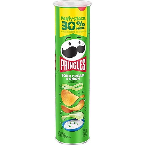 What comes next after the “pop” of a Pringles Sour Cream and Onion Party Stack can? The crisp, crunchy, hit-the-spot taste of potato seasoned with zesty sour cream and onion. Ingeniously shaped Pringles Sour Cream and Onion potato crisps are insanely light, crispy, and never greasy. Perfect for sharing, these crisps chips are perfectly salty and bursting with savory flavor. With this convenient, portable can, it’s easy to create your own snacking moments wherever and whenever; Grab a can as a pick-me-up for after school or pack as the ultimate car snack for road trips. Bring these snacks to game time and pack a few for other Pringles fans. Stash this anytime snack in your work desk or pantry to enjoy anytime. Share Pringles at your next cookout or BBQ to turn up the flavor and fun among family and friends. Get your hands on Pringles Sour Cream and Onion potato crisps for an irresistible taste experience that keeps you coming back, stack after stack.