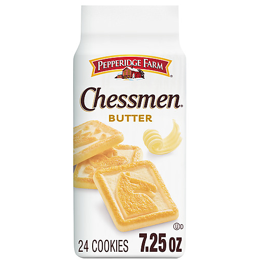 Indulge in an elegantly sweet classic with Pepperidge Farm Chessmen Butter Cookies. Superbly crafted with artful skill and golden baked to a tender crisp, Pepperidge Farm Chessmen Cookies come in whimsical chess shapes and have a rich, buttery flavor that melts in your mouth. They’re the perfect balance of salty and sweet with a light and crunchy shortbread texture that’s the ideal side to your coffee or tea. It's a true celebration of a cookie’s fundamentals – baked to perfection with quality ingredients like creamery butter and cage-free eggs. Each 7.25-ounce bag contains 24 cookies and is perfect for sharing with friends or stashing in your pantry to satisfy your cravings for sweet snacks. Enjoy Pepperidge Farm Chessmen shortbread cookies on their own or use them in your favorite dessert recipes. They’re the perfect substitute for vanilla wafers in banana pudding, adding a delicious buttery crunch that lasts. In addition to Chessmen Butter Cookies, Pepperidge Farm’s line of European-inspired cookies includes Verona Thumbprint Cookies, Brussels Chocolate Lace Cookies and more. Pepperidge Farm cookies are crafted with care and quality ingredients by creative bakers who believe baking is more than a job – it’s a passion.